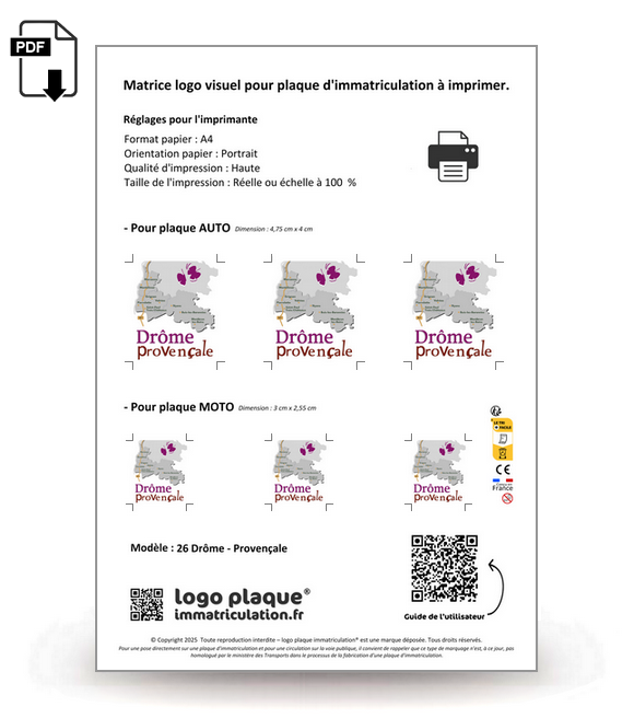 Show your colors in style with our license plate identification logos! Download and print your logo to personalize your vehicle, whether for a day, a week, a month , a year, and more… Express your preferences and passions with a unique and original touch.
