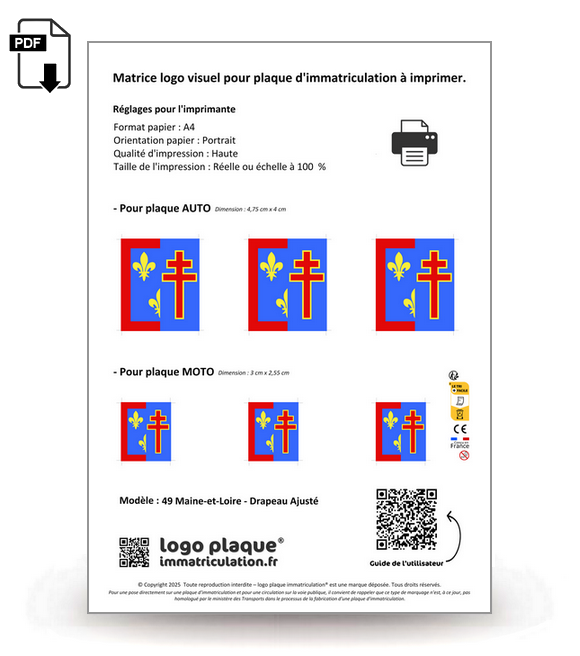 Aux dimensions d'une feuille A4, la matrice regroupe les logos parfaitement ajustés pour les plaques auto et moto.