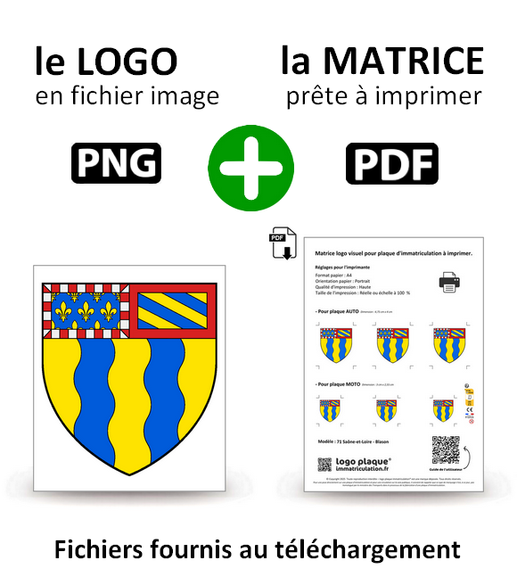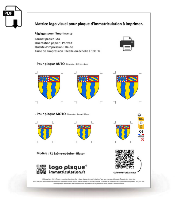Aux dimensions d'une feuille A4, la matrice regroupe les logos parfaitement ajustés pour les plaques auto et moto.