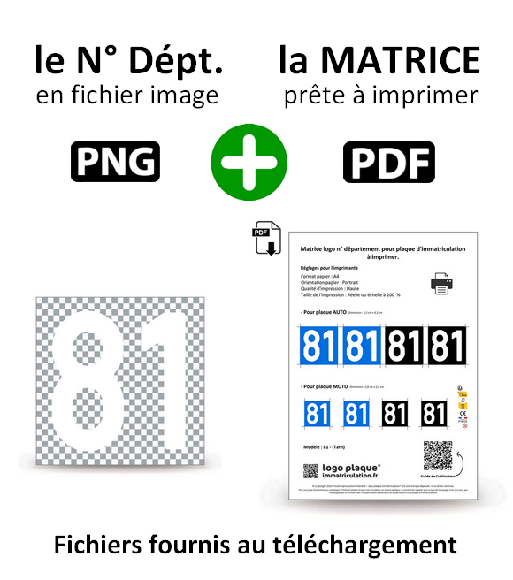 Logo N° Département spécialement adapté à l'espace du numéro sur les plaques d'immatriculation !