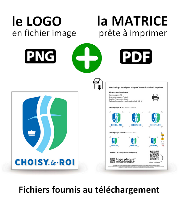 • Chaque "Matrice logo" comprend des logos aux dimensions pour les plaques auto et moto. Les "Matrices logos" sont directement prêtes à être imprimées sans aucune retouche, ni aucune connaissance spéciale.