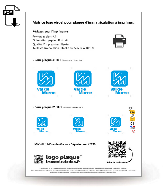 • Nos logos visuel et n° département sont livrés dans des pages "Matrice logo" aux dimensions d’une feuille A4 et au format de fichier PDF.