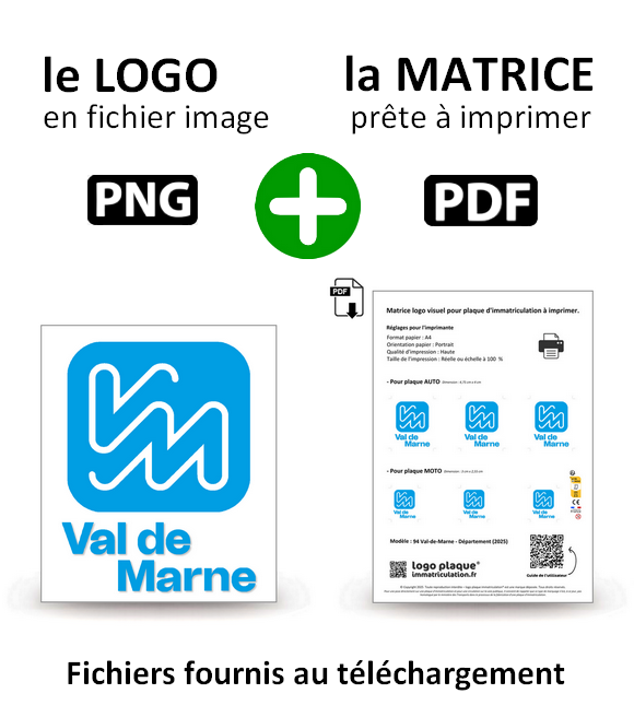 • Chaque "Matrice logo" comprend des logos aux dimensions pour les plaques auto et moto. Les "Matrices logos" sont directement prêtes à être imprimées sans aucune retouche, ni aucune connaissance spéciale.