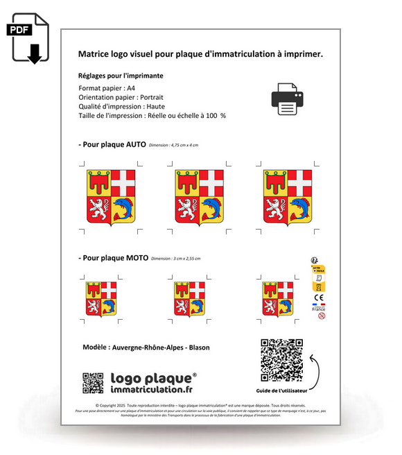 La planche matrice à imprimer et le logo sont livrés dans un fichier numérique par téléchargement après la validation du règlement.