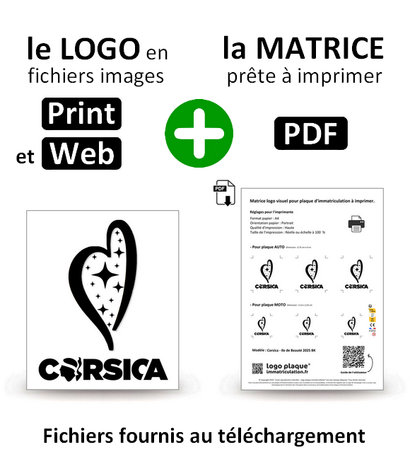 Aux dimensions d'une feuille A4 au format PDF, elle regroupe le logo parfaitement ajusté pour les plaques auto et moto. Prête à l'emploi, elle s'imprime directement, sans aucune retouche ni connaissance technique. Un résultat professionnel en toute simplicité.