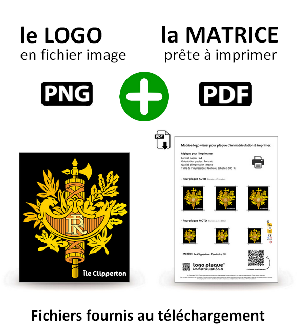 • Chaque "Matrice logo" comprend des logos aux dimensions pour les plaques auto et moto. Les "Matrices logos" sont directement prêtes à être imprimées sans aucune retouche, ni aucune connaissance spéciale.